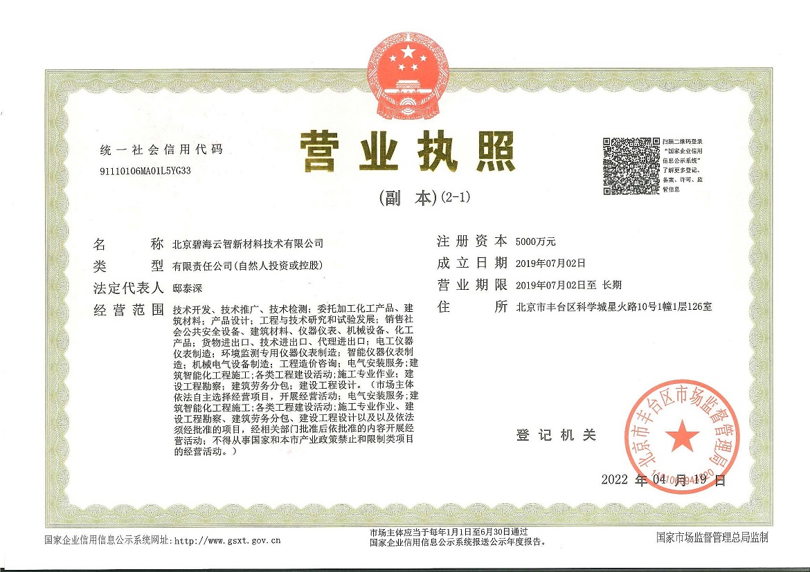 北京碧海云智新材料技术有限公司是一家为客户提供高质量的化工产品与技术服务的高新技术企业,公司以致力于能源大气水土壤和谐为使命,主营业务有绿色涂料、智能防腐、阴极保护、灾害预警等,在石油石化、船舶、建筑、海洋工程等领域具有领先优势。公司还积极响应国家的军民融合政策,为实现国防和军队现代化提供可持续发展的储备力量。